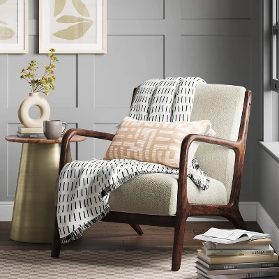 This Dash Kantha Solid Throw Blanket from Threshold™ makes a bright and warm addition to your living room or sitting space. The classic rectangular throw blanket is adorned with black kantha dashes on a white background and black trimmed edges, giving it an elegant look when draped over a chair, folded over the couch, or even spread out onto the bed. Plus, it’s made of a soft, midweight cotton blend for comfortable use.