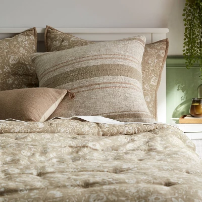 Let your decor have a hint of warm, traditional style with the Euro Traditional Woven Stripe Decorative Throw Pillow from Threshold™. This square throw pillow features a woven stripe pattern in neutral hues for vintage flair. The soft cotton-linen fabric makes it comfy to use, and it’s recommended for indoor use. Place this woven throw pillow on your bed or couch to add classic appeal to your space.