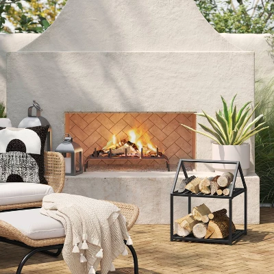 Keep the piles of wood nicely organized and handy with the Metal Wood Storage A Frame from Threshold™. Designed in an A shape, this wood storage frame comes with two shelves to help provide ample space for the logs. Perfect for places with cold winters, the metal-frame wood storage works well in both indoor or outdoor space.