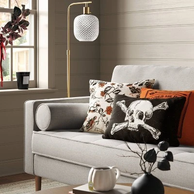 Oversize Skull And Crossbones Woven Cotton Lumbar Halloween Throw Pillow Black – Threshold™