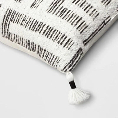 Make over your bedroom or living space with the contemporary charm of this Oversized Modern Geometric Patterned Lumbar Throw Pillow from Threshold™. Made of 100% cotton with soft filling, the rectangle throw pillow is adorned with an abstract geometrical pattern and features matching tasseled corners for a fun look. Whether you lounge in your favorite recliner, read a book on the couch or watch TV curled up on your sofa, you’ll love leaning on this oversized lumbar pillow.